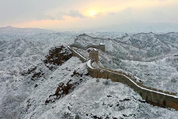 Surprise snow covers the Great Wall, turning it into a springtime wonderland! โ๏ธ๐ธ